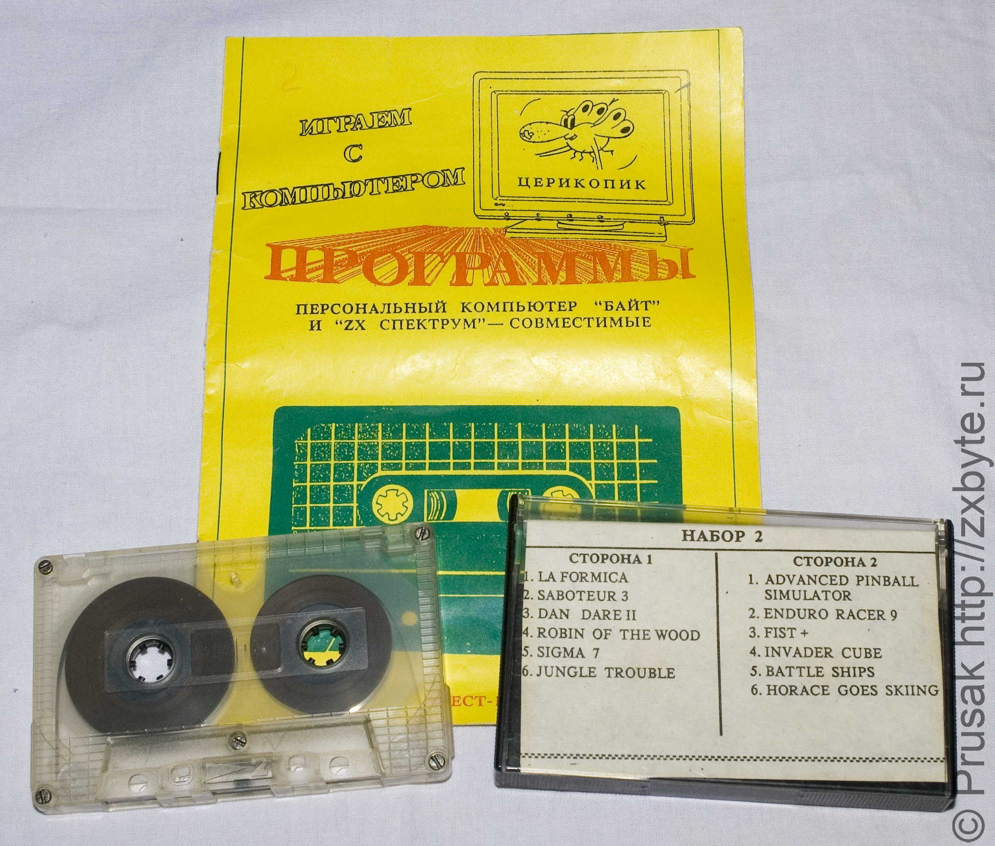 tzx-версии игр с кассеты "Набор 2" для "Байта" со снятой защитойКроме этого в архиве находится сканированная книжка с описанием игр, фотографии кассеты, скан обложки.