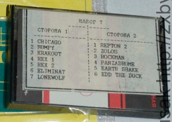 tzx-версии игр с кассеты "Набор 7" для "Байта"Кроме этого в архиве находится сканированная книжка с описанием игр, фотографии кассеты, скан обложки.