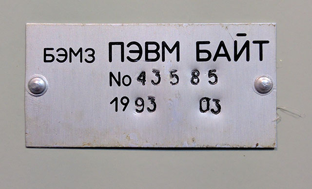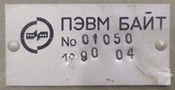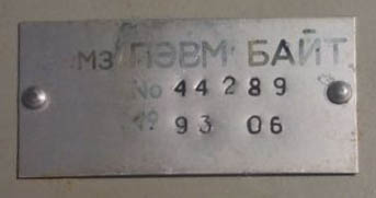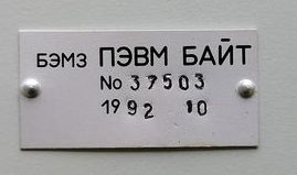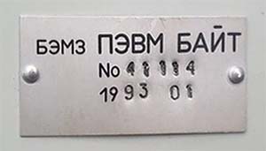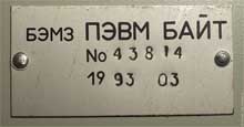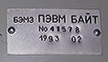 | 1995.12 | 63478Возможно перебита дата. Компьютер с этим номером не мог быть произведен в декабре 1996 года - в это время Байты не выпускались и уже исчезли из продажи в магазинах. | |