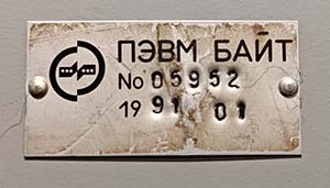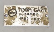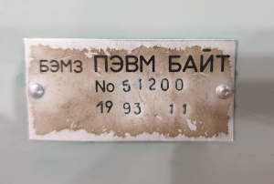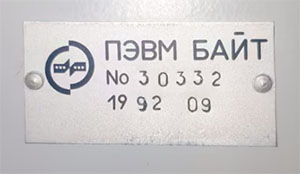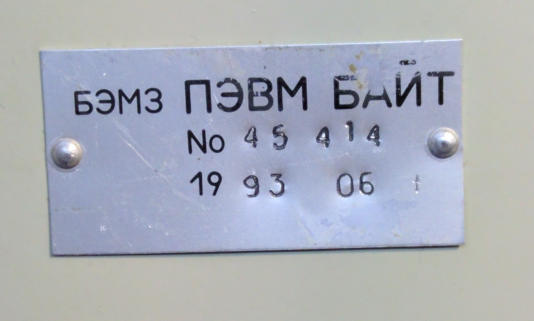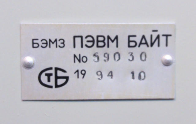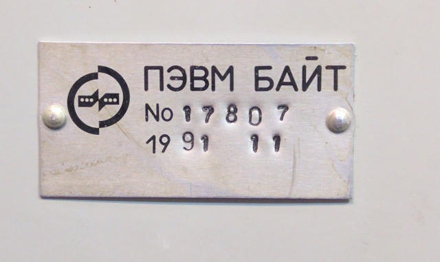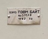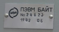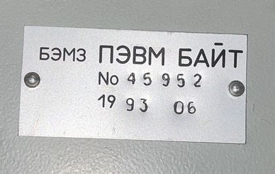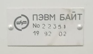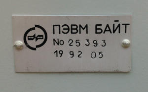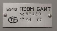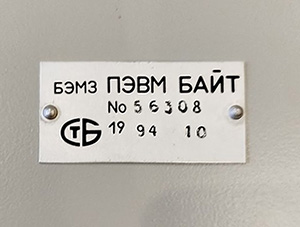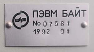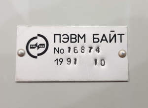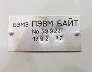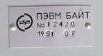| 1991.12 | 07539Тут какая-то нестыковка. Компьютер с таким номером должен быть "старой" модификации, но по факту это самый обычный "Байт". Поэтому остаётся загадкой почему такой серийный номер и такая дата изготовления. Вероятно, дата выпуска с ошибкой в один год. Для такого номера более подходит дата выпуска 1990.12 | |