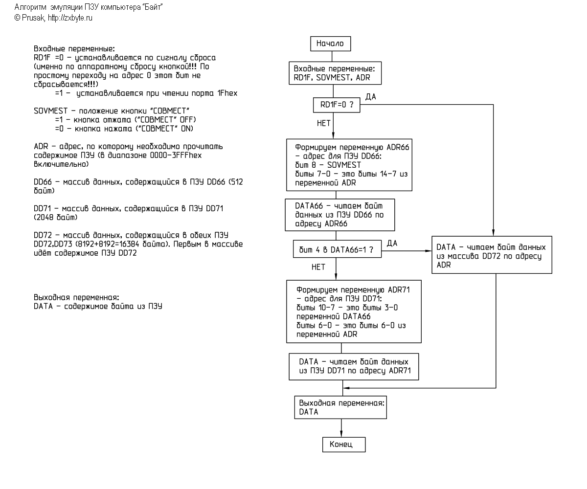 Алгоритм эмуляции содержимого ПЗУ «Байта» можно представить следующим образом: