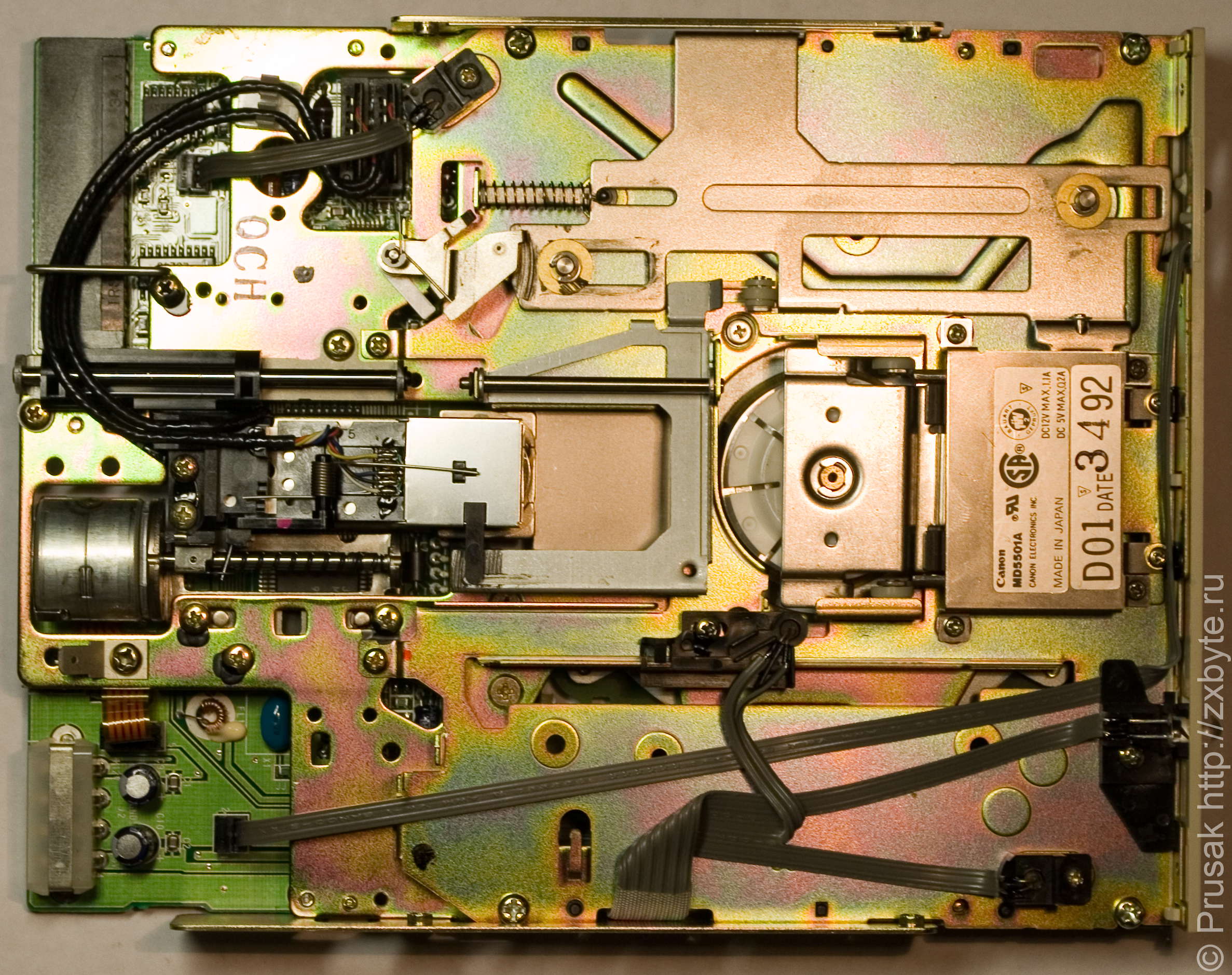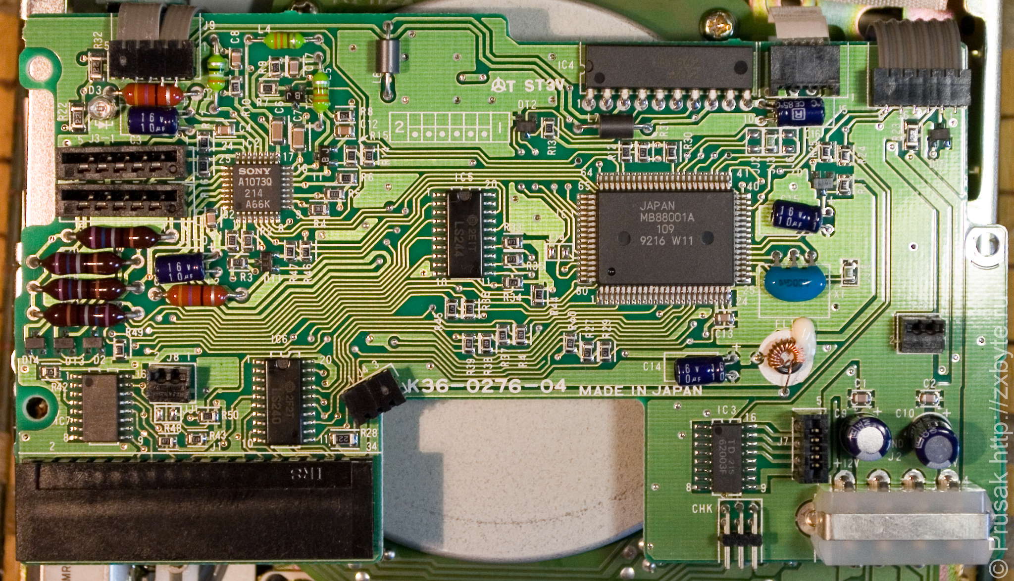 Контроллер выполнен на микросхеме MB88001A. Можно предположить, что она может иметь какой-нибудь вход для переключения режимов DD/HD, но, к сожалению, по этой микросхеме нет никакой информации. Так что вопрос использования дисковода Canon MD5501A на ZX-Spectrum остаётся актуальным.