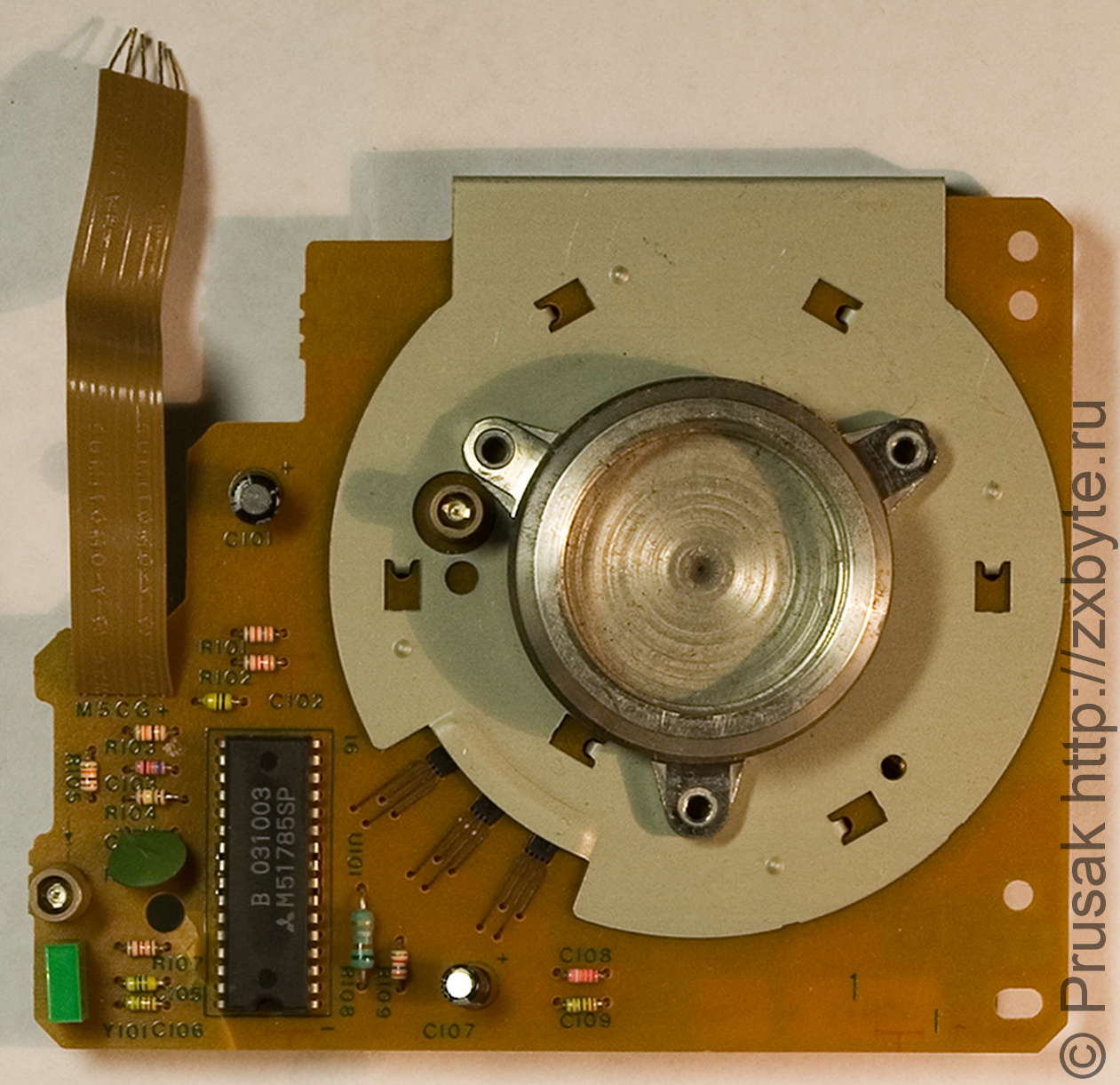 Т.к. дисковод не поддерживает режим DD и, соответственно, скорость вращения диска в 300 об/мин, плата сервопривода не имеет контакта для переключения скорости вращения диска. Однако плата построена на основе микросхемы M51785SP, которая таки умеет понижать скорость вращения с 360 до 300 об/мин.