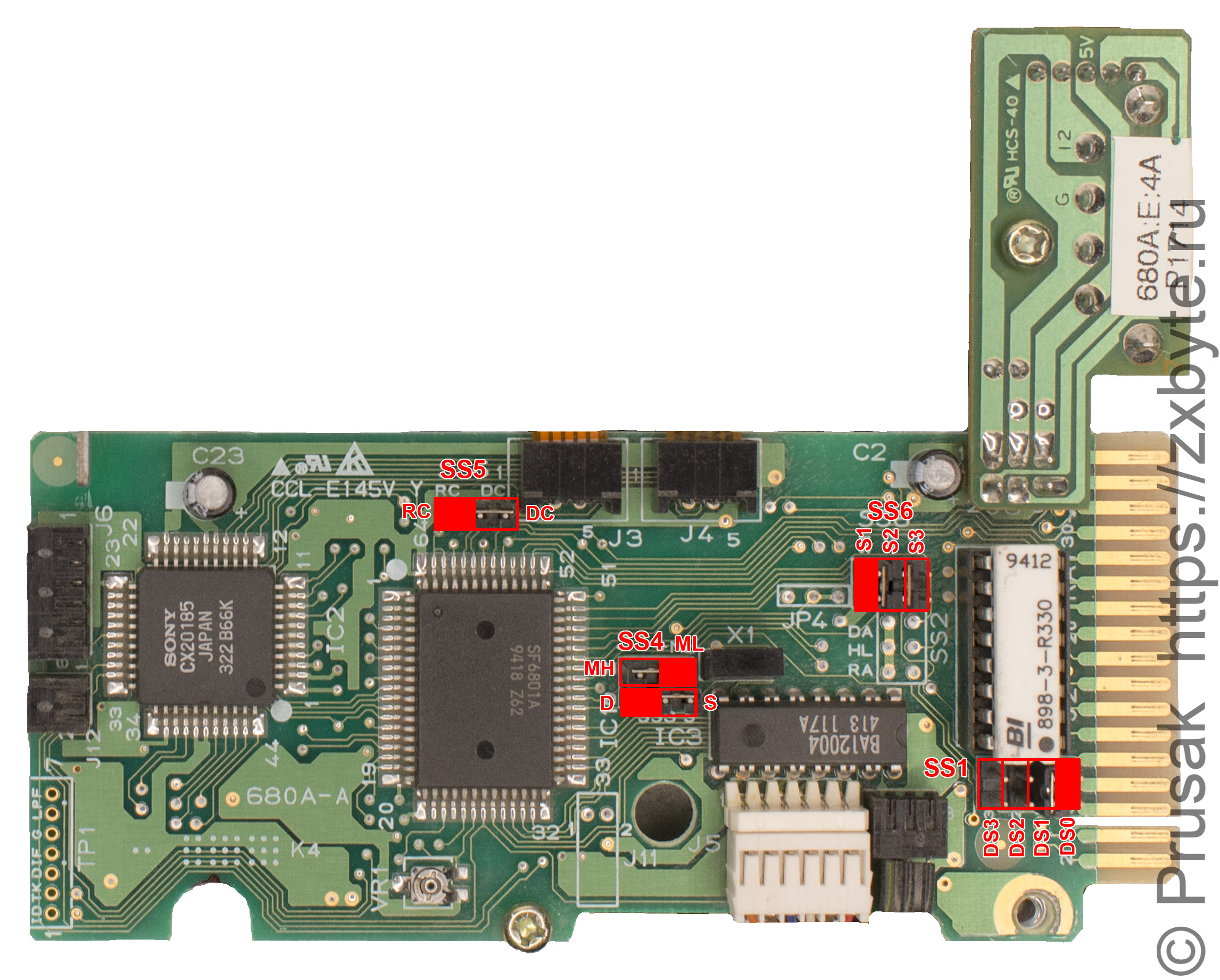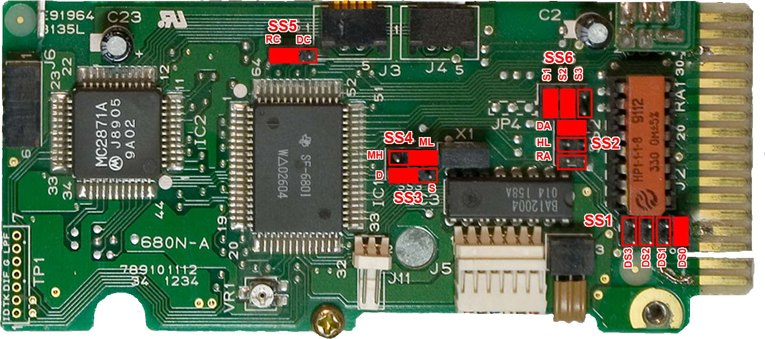 Назначение перемычек из групп SS2 и SS6 мне неизвестно. Лучше оставить их так, как они стоят на фотографии платы (установлены перемычки S1, S2 и DA).