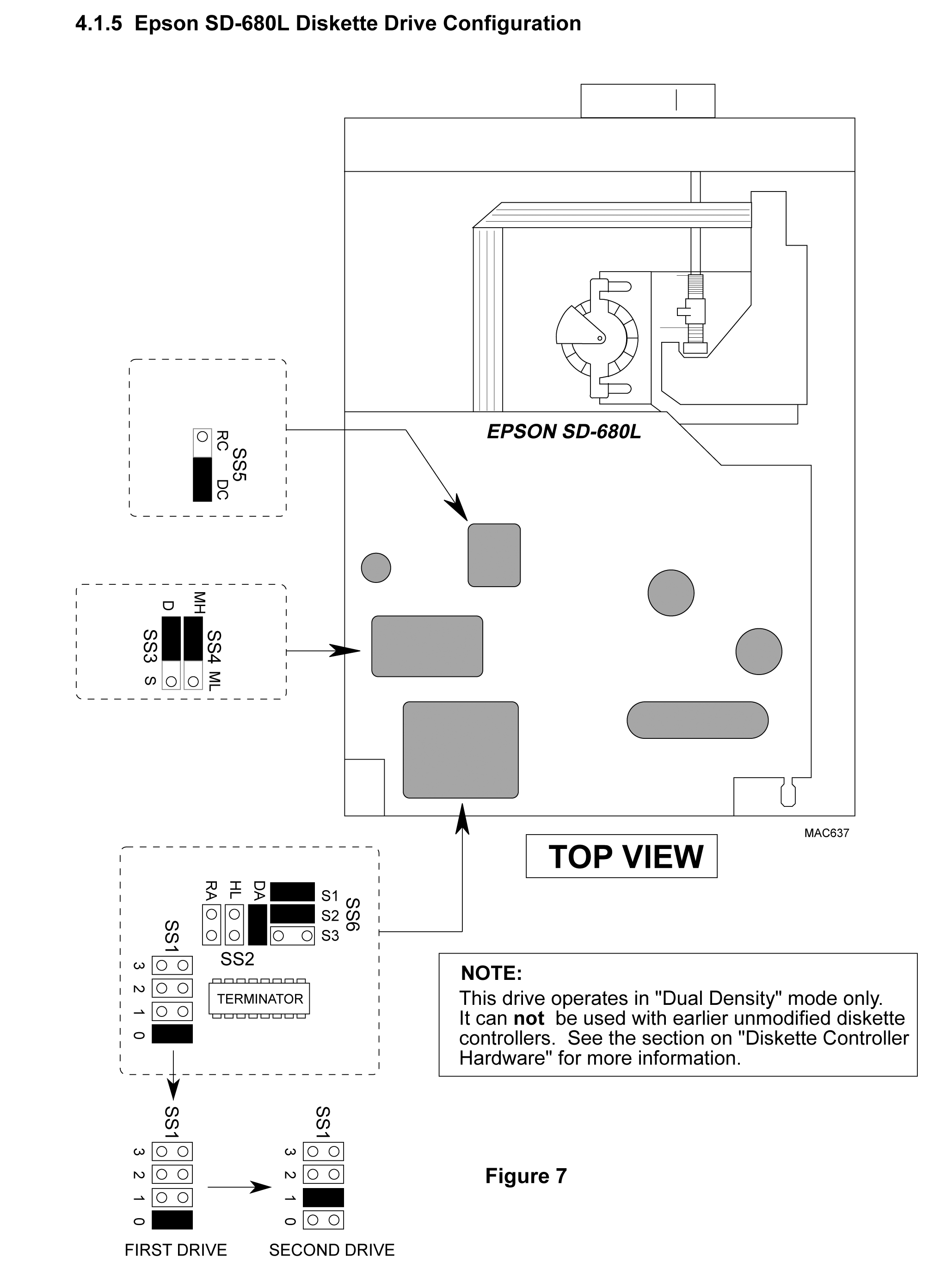 В случае использования дисковода (1,2Мб, HD) на PC достаточно установить перемычки S, DC, S1, S2, DA (положение перемычек ML/MH роли не играет) и выбрать номер накопителя перемычками (DS0-DS3).