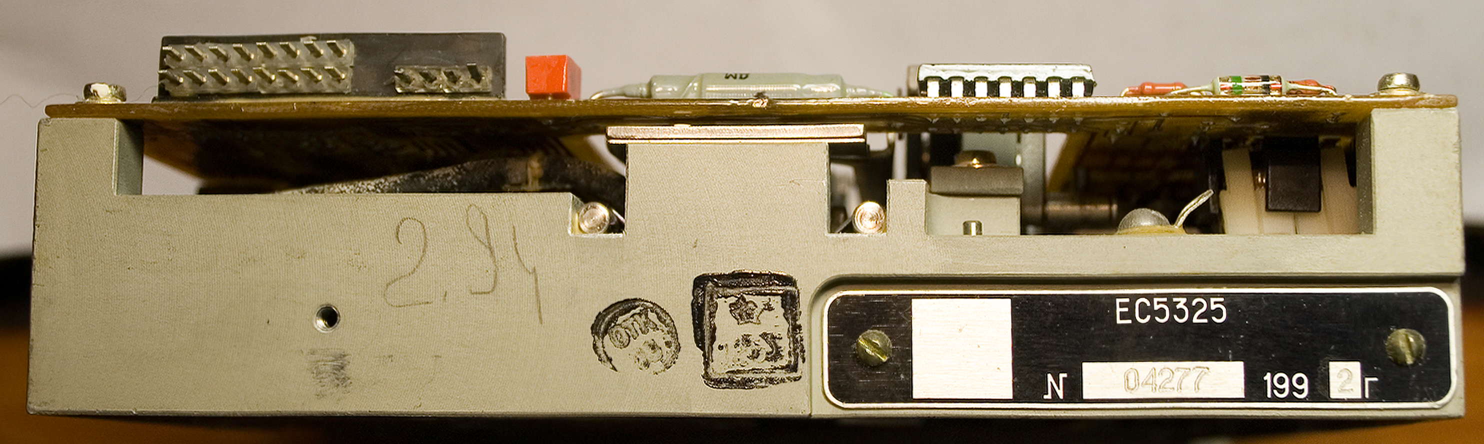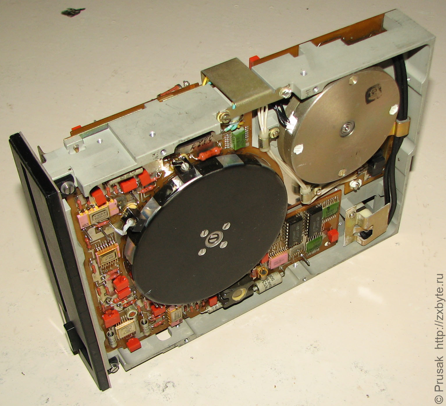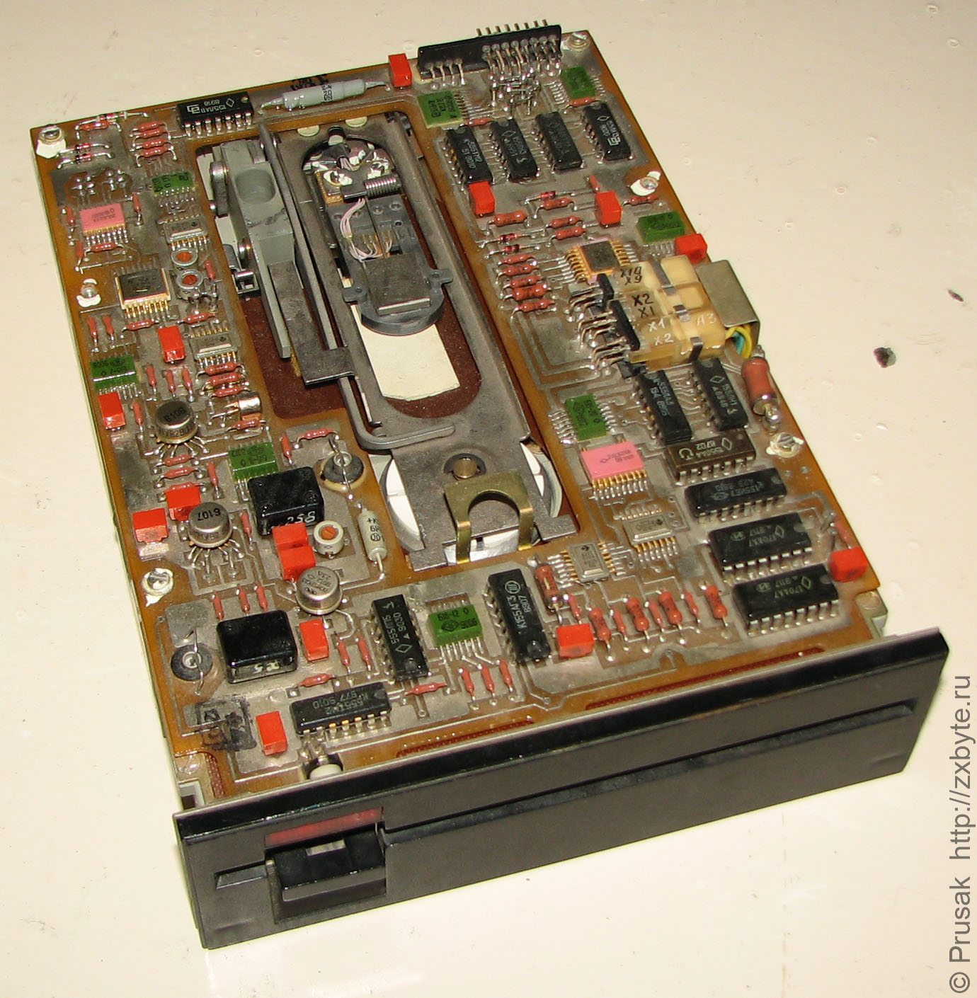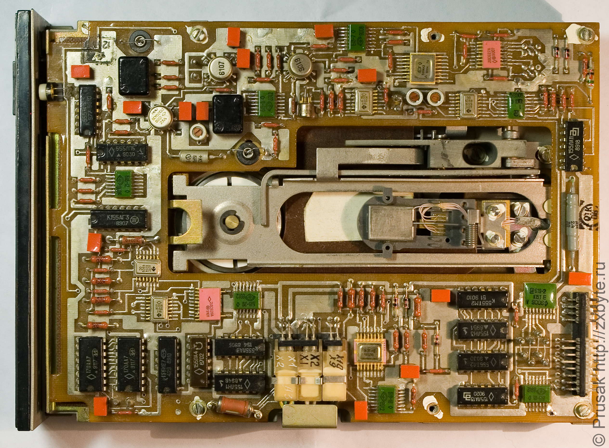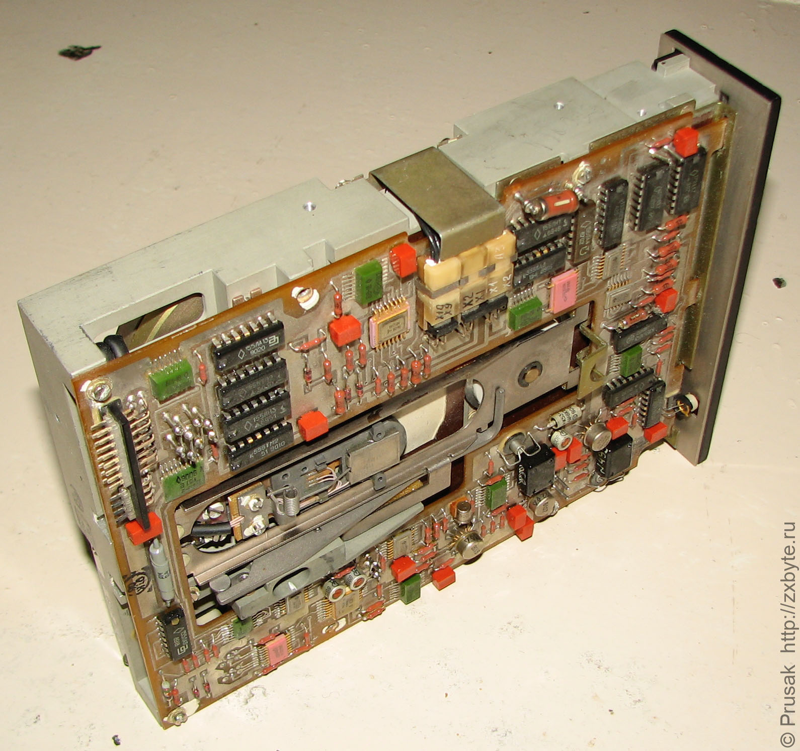 Очень необычный дисковод. Производитель сего чуда - ОАО "НИИСВТ". Для фиксации дискеты используется кнопка, а не ручка. Дисковод поражает обилием позолоченных компонентов. Почти все компоненты имеют военную приёмку. Корпус дисковода не литой, а фрезерованный из цельного куска металла, что говорит о высокой трудоёмкости и стоимости изготовления.