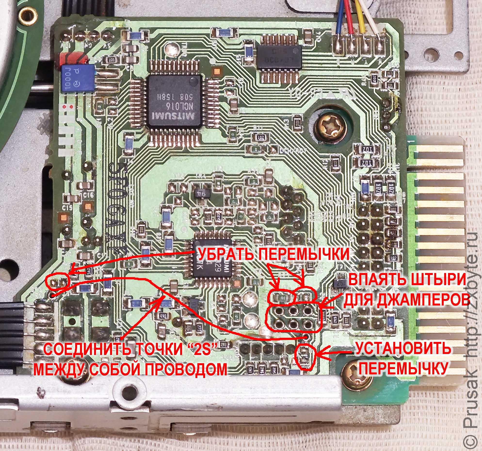 Таким образом, чтобы доработать плату дисковода для "нормальной" работы в режимах DD/HD потребуются следующие действия: