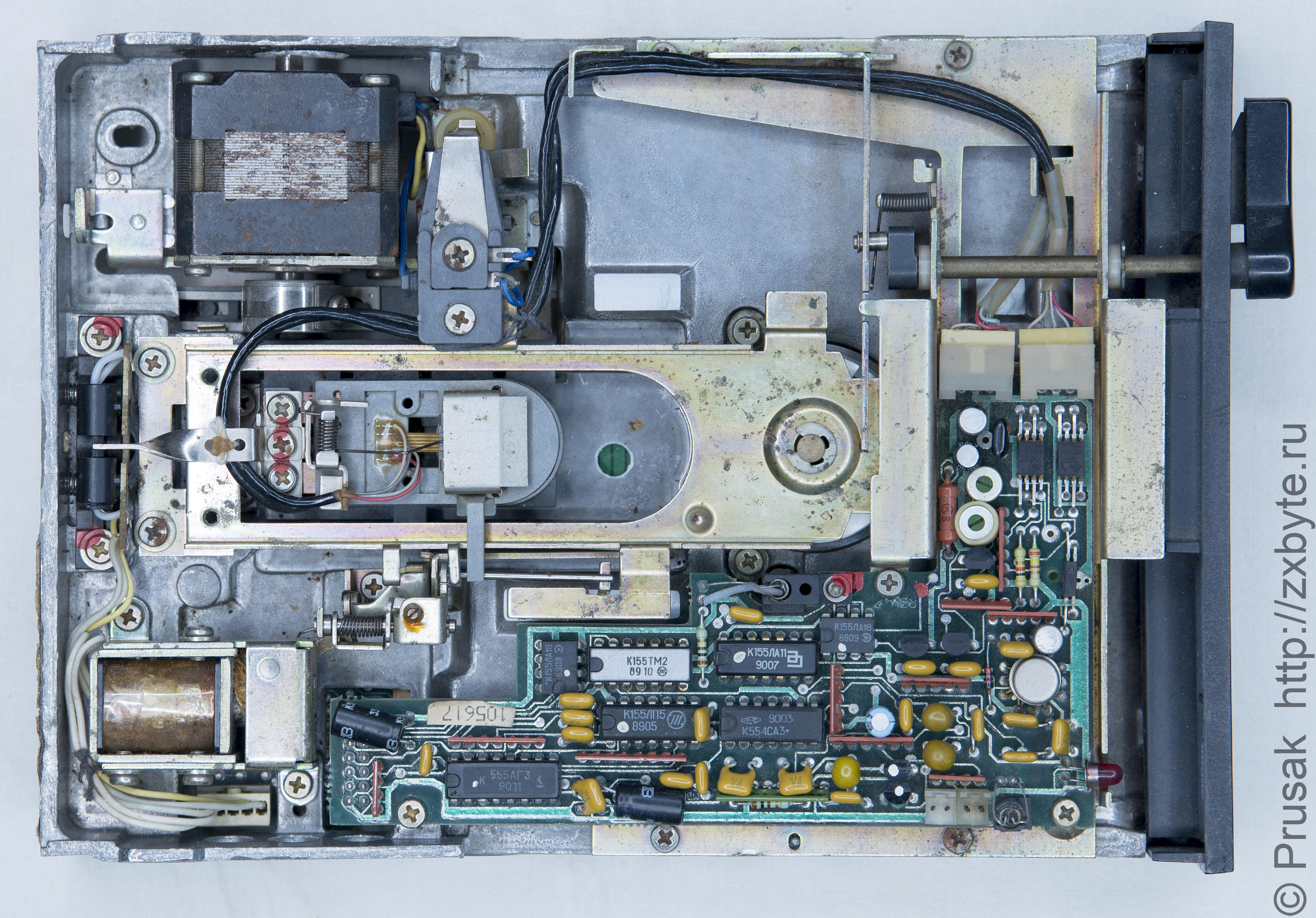 DS,DD, 80 дорожек. Электромагнит для верхней головки. После смазки и юстировки обычно начинает работать тихо и хорошо.
