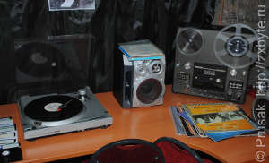 Кроме древней вычислительной техники на выставке присутствует аудиоаппаратура в лице проигрывателя винила Орфей-103С и бобинного магнитофона Олимп МПК-005С-1: