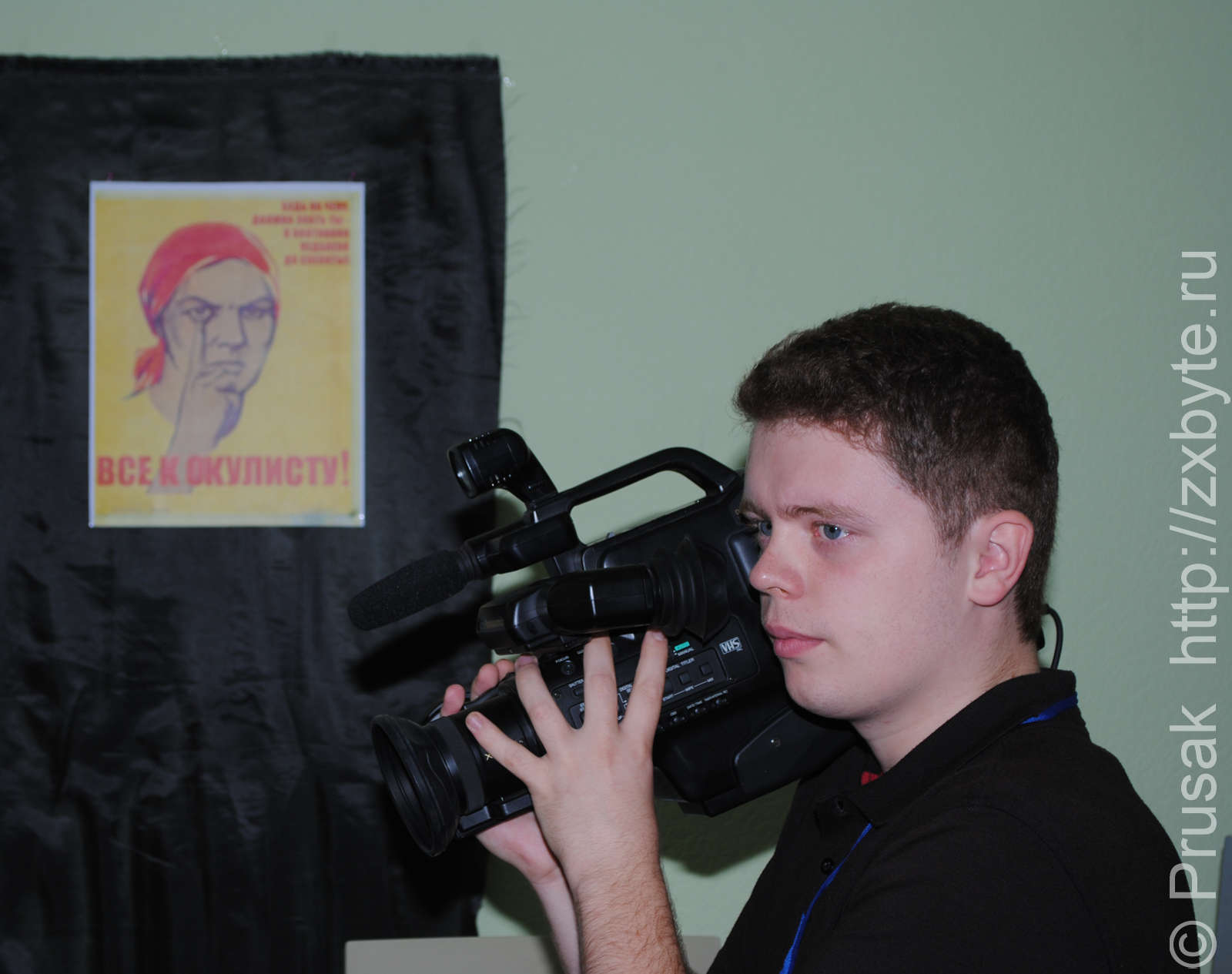Видеокамера Panasonic M3000 рядом с персоналкой - рабочая, на неё снимается видео с выставки.