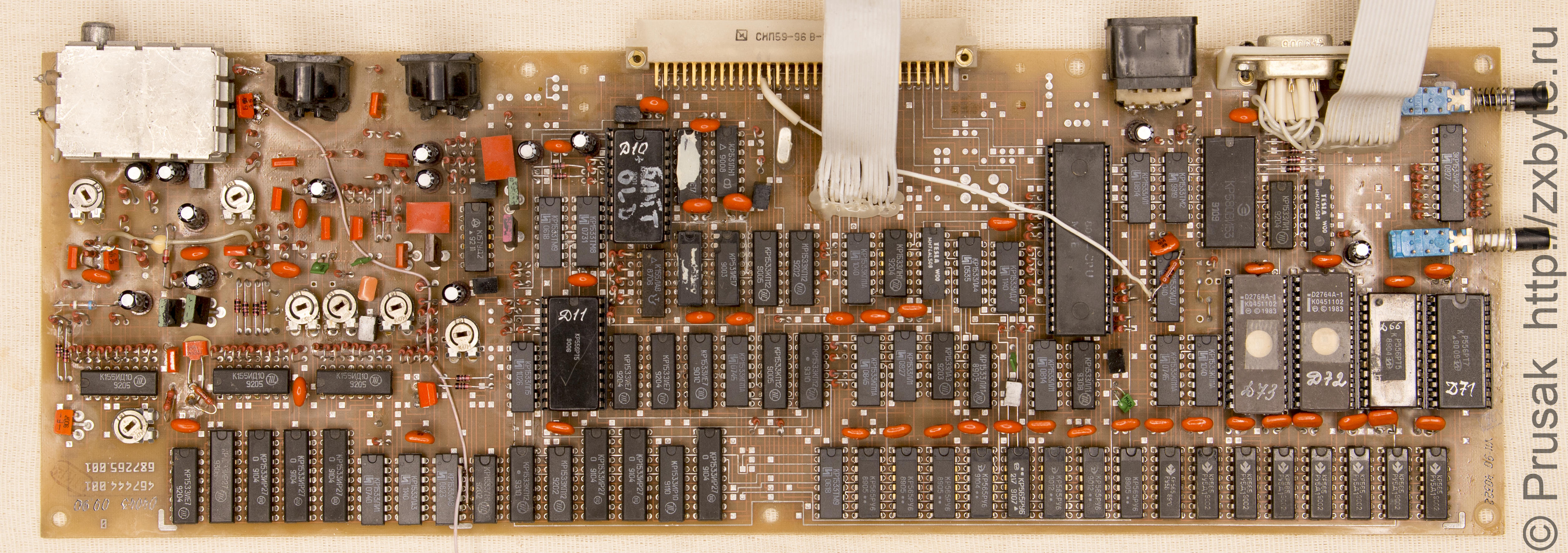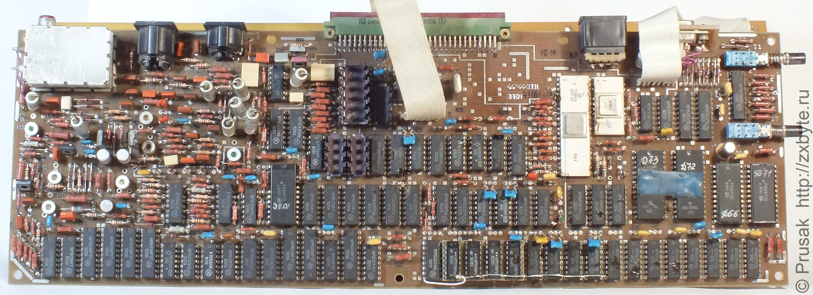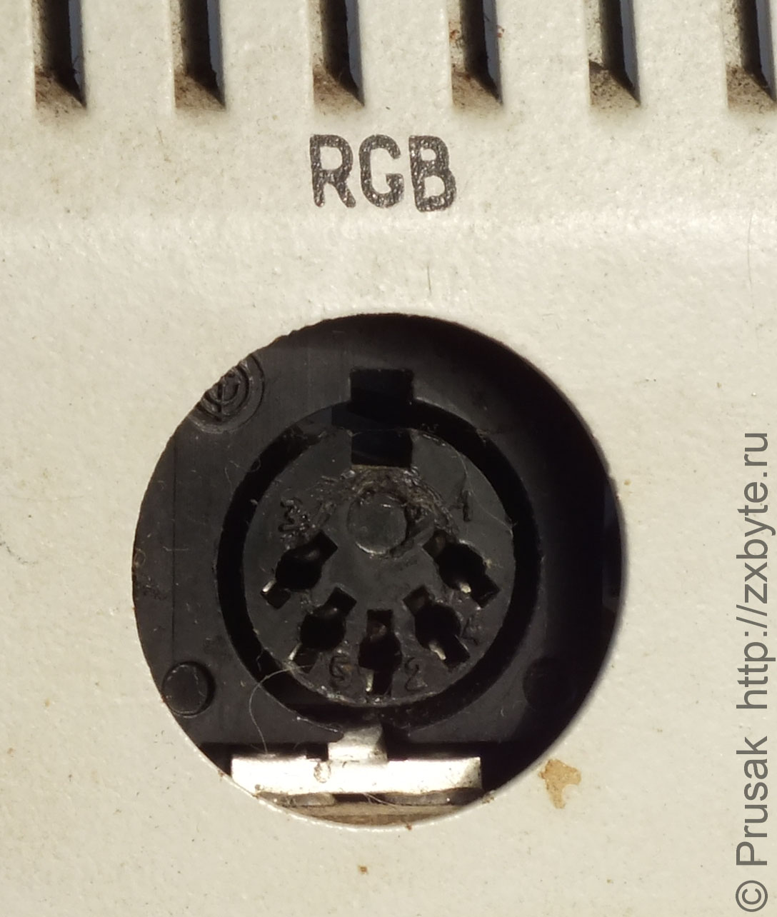 Конечно, иногда попадаются обычные Байты с 5-контактным разъёмом RGB, но его туда ставили исключительно от бедности. В «старом» же Байте 5-контактный разъём на RGB-выход установлен сознательно. Самое неприятное заключается в том, что при этом на разъём не попадает сигнал яркости, таким образом при подключении «старого» Байта через RGB можно увидеть только 8 цветов. Справедливости ради отмечу, что яркостной сигнал используется в SECAM-кодере «старого» Байта, т.е. при его подключении через антенный вход телевизора будут видны все 15 цветов.