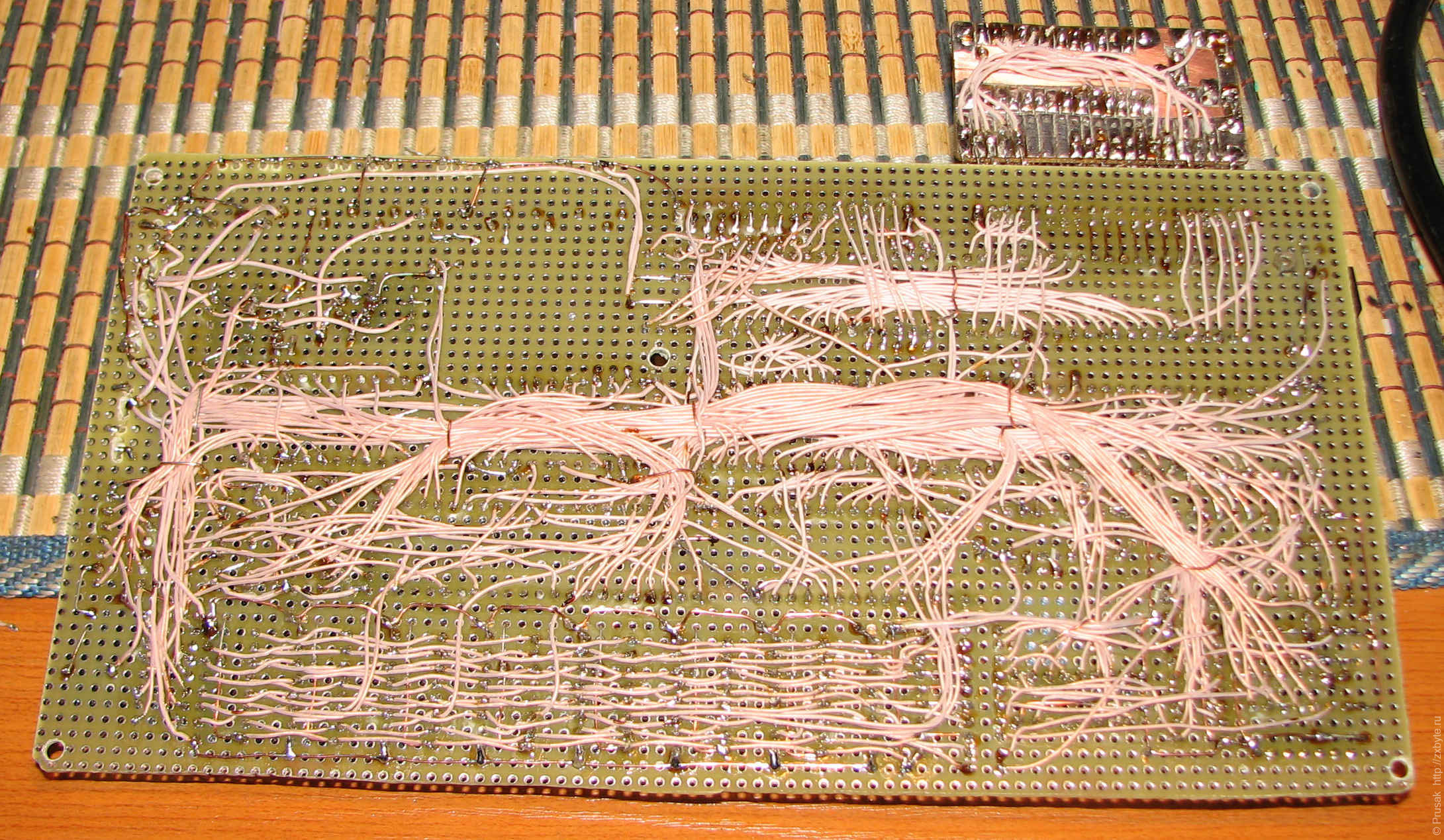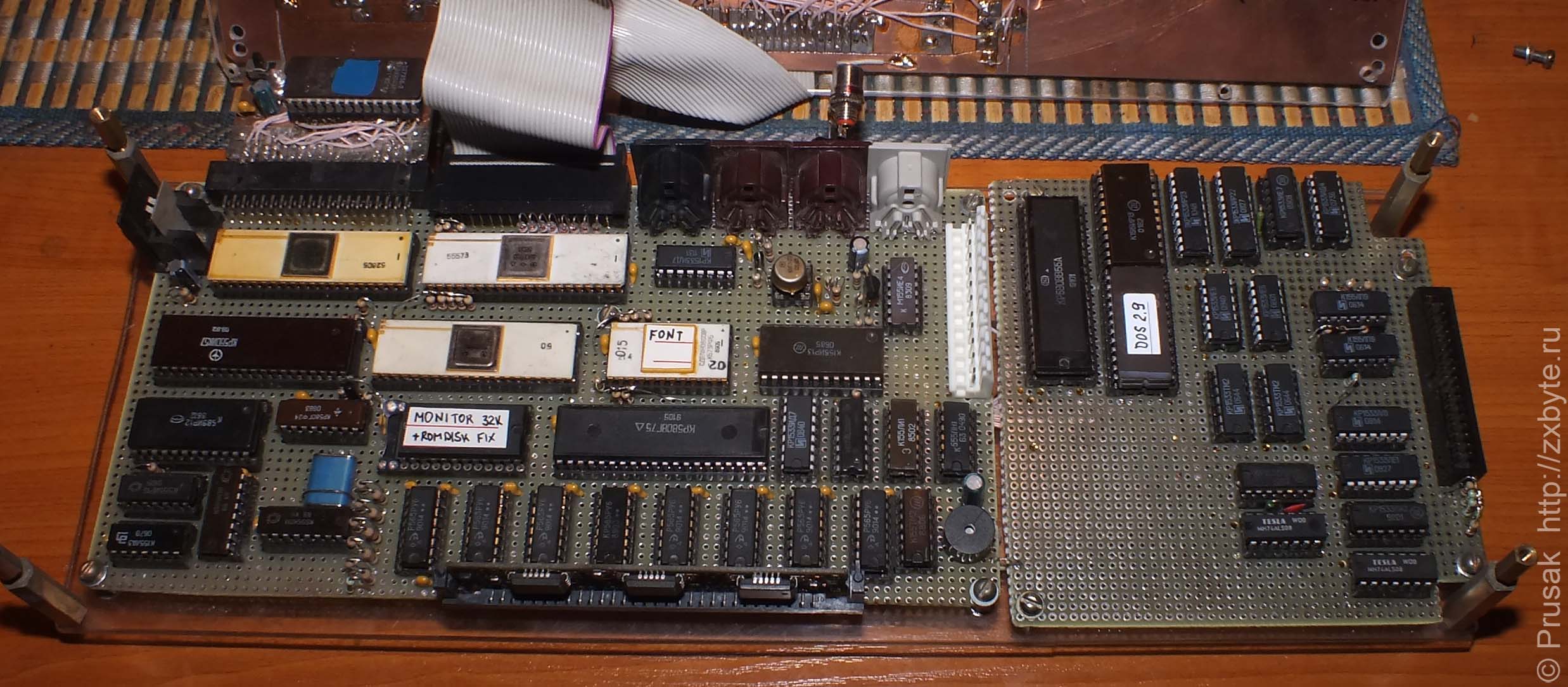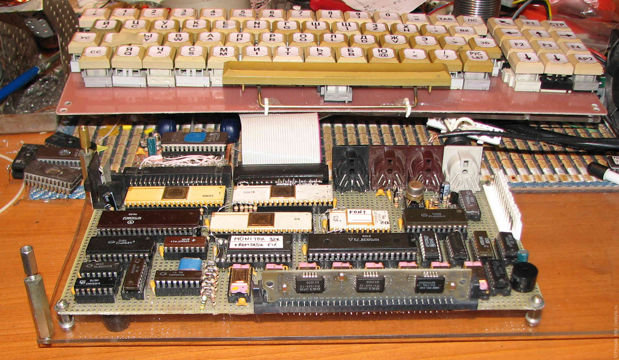 Самодельный компьютер Радио-86РК, спаянный на макетной плате. Воткнутая в разъём плата - ROM-диск