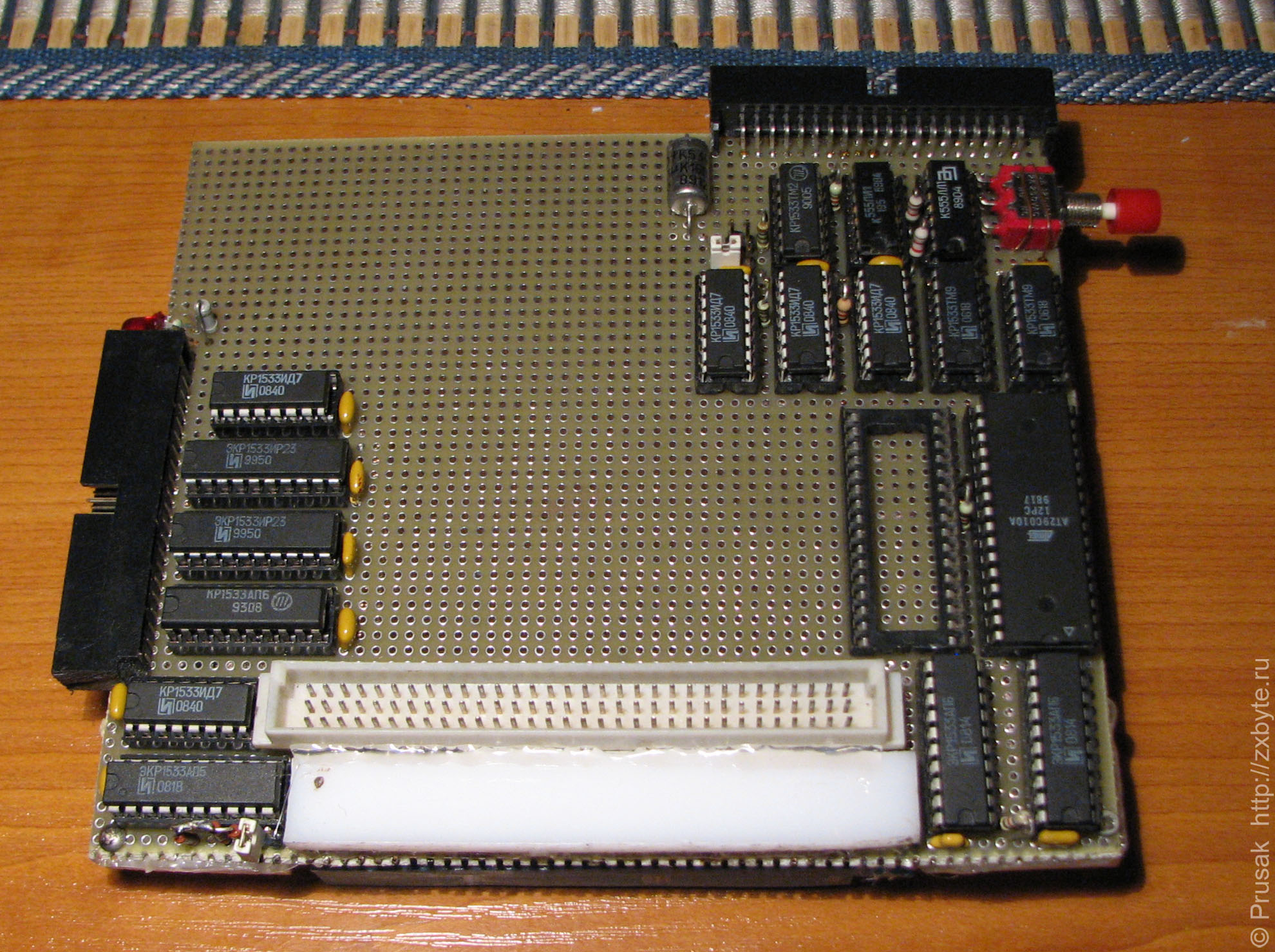 В левой нижней стороне платы спаян IDE-контроллер, на самой макетной плате достаточно места для ещё какой-нибудь полезной периферии.